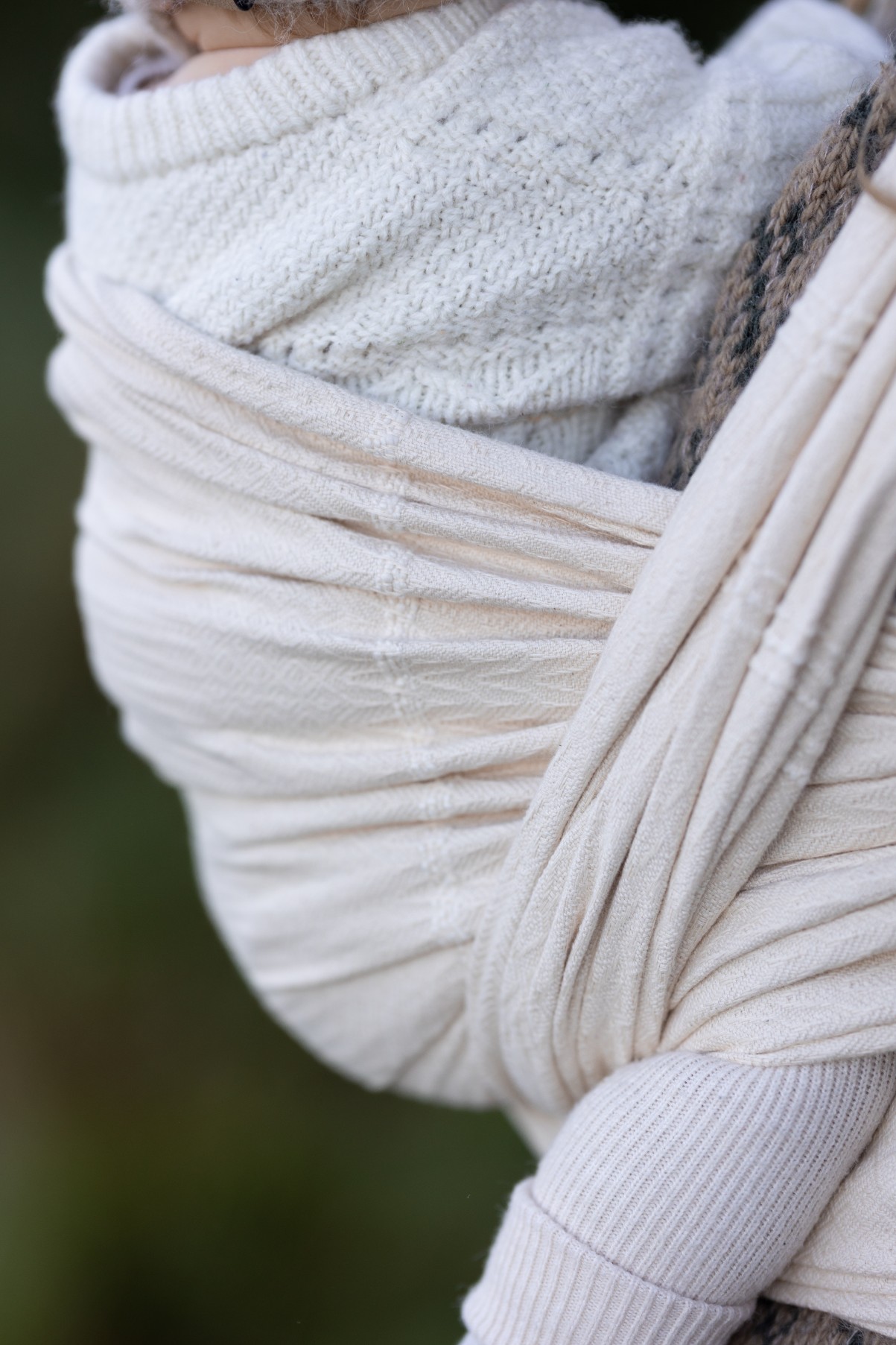 Dancing Pure is a part of our Pure Cotton Collection which is a unique series of baby wraps made from natural undyed sustainable cotton. Because the cotton is undyed the wrap becomes extremely soft very quickly. The wrap is woven in our renown ever changing twill pattern. This is the perfect wrap for new-born’s because of the extreme softness but strong enough to be used unto toddlerhood and beyond. This is also the perfect wrap if you do not want to expose your baby to any form of dyes.