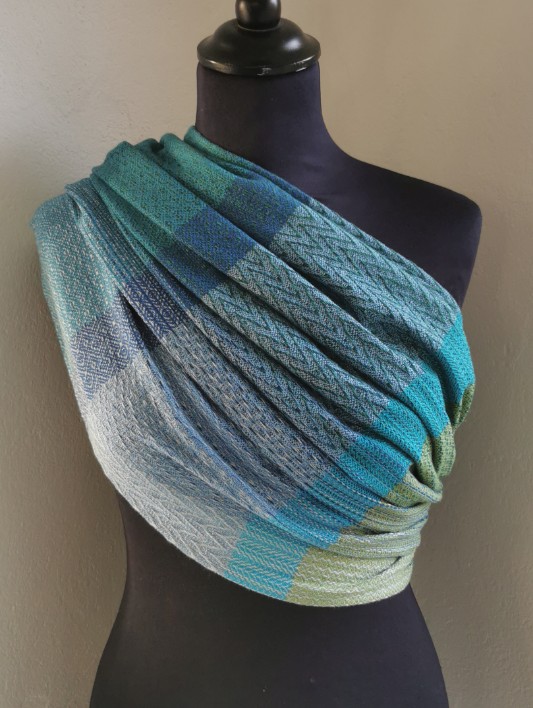 Nature’s Dance is a subtle, soft and bright colored wrap inspired by the stunning blue and green colors of the incredible planet Earth.