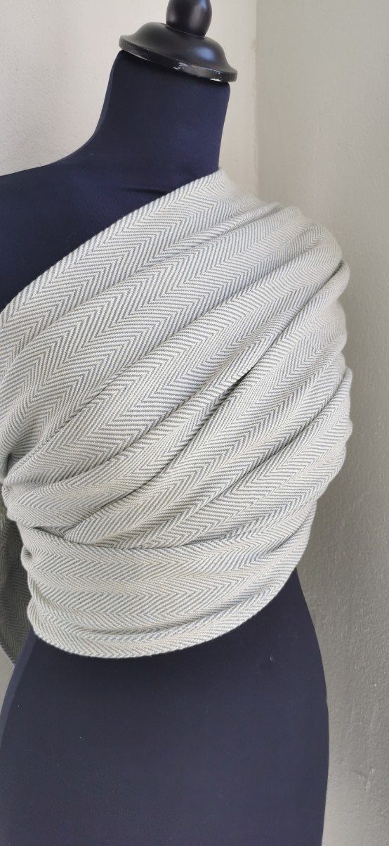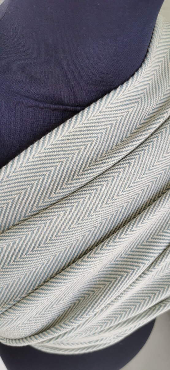 The warp is a completely natural sustainable cotton warp and the weft is woven in soft creamy blue. The pattern is a classic Scandinavian twill pattern.